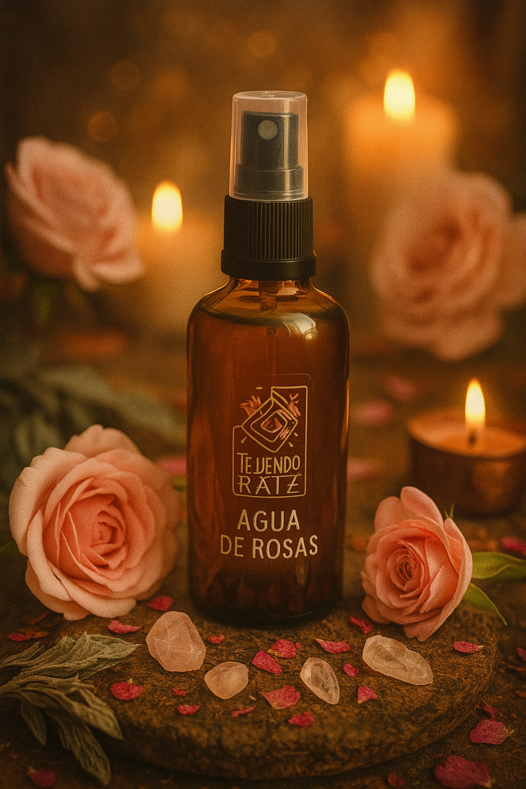 Elaborada con pétalos de rosas naturales, esta agua sagrada se asocia con el amor, la dulzura y la armonía interior. Usada desde tiempos antiguos en rituales de conexión emocional, en Tejiendo Raíz es elaborada artesanalmente y activada energéticamente para ayudarte a elevar la vibración del corazón y el entorno.