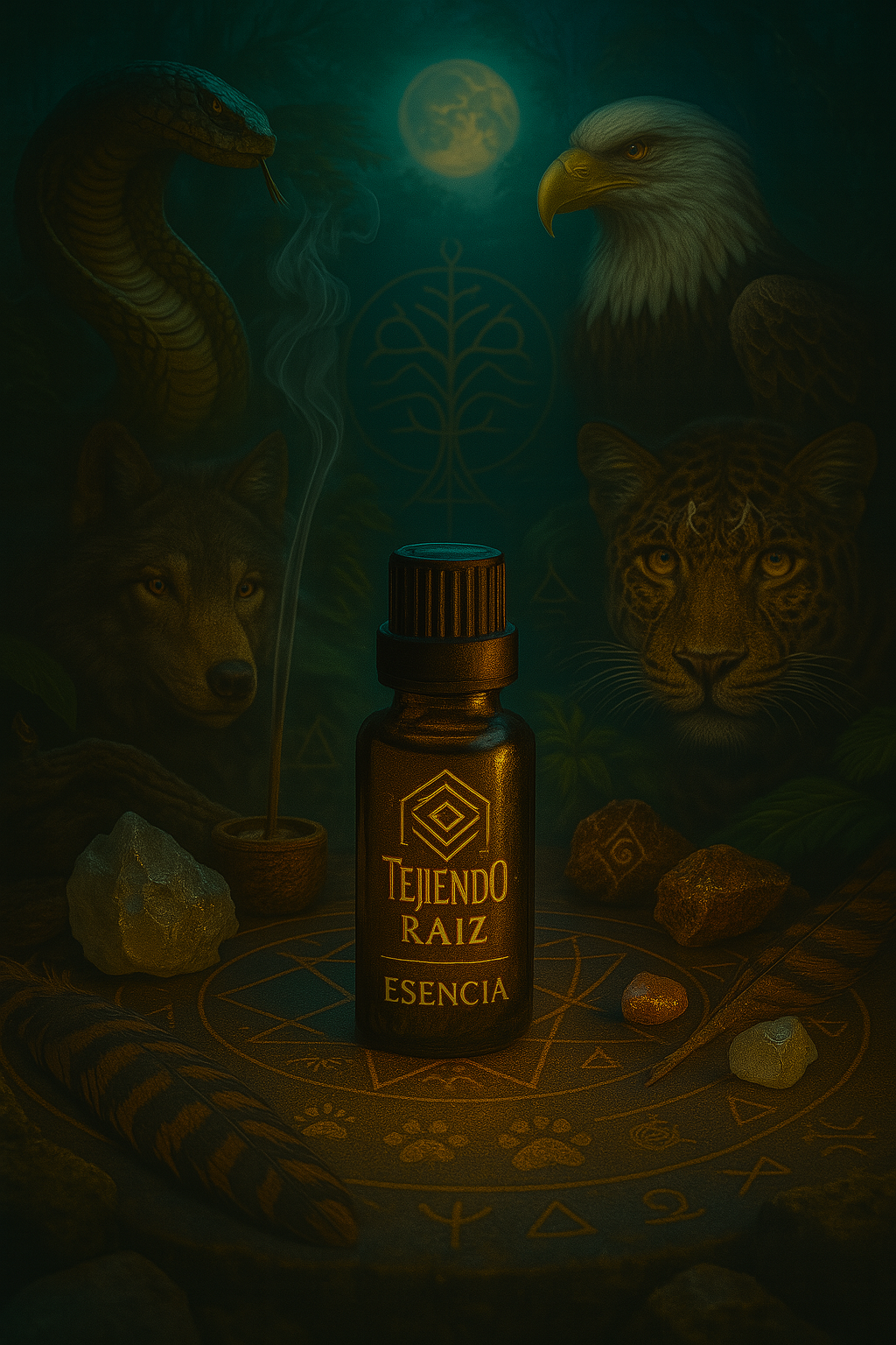 Aplica en el pecho, planta de los pies o muñecas antes de iniciar una jornada importante, tomar decisiones o trabajar con tu energía personal. También puedes usarla antes de una meditación para invocar a tu animal de poder y abrir visión interior.
