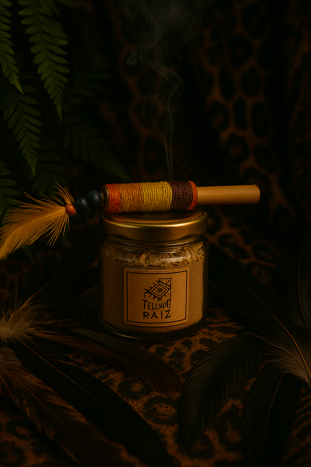 Elaborado con tabaco amazónico y otras plantas, el rapé se sopla por la nariz para despejar la mente, alinear el campo energético y abrir visión. No es recreativo: es medicina.
