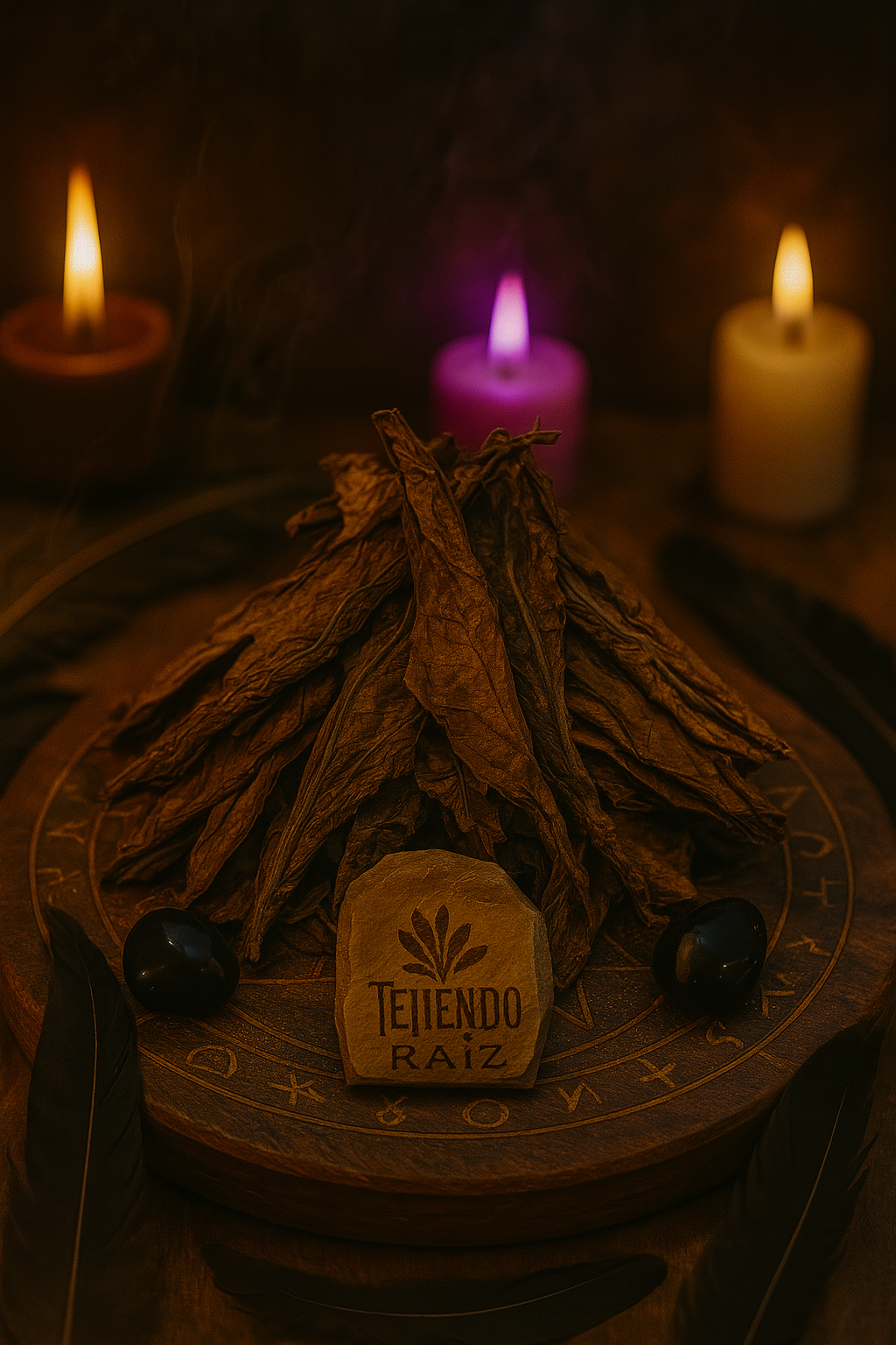 Considerado una de las plantas maestras más antiguas, el tabaco conecta con los mundos invisibles, protege, limpia y enraíza. Es puente entre lo humano y lo divino.